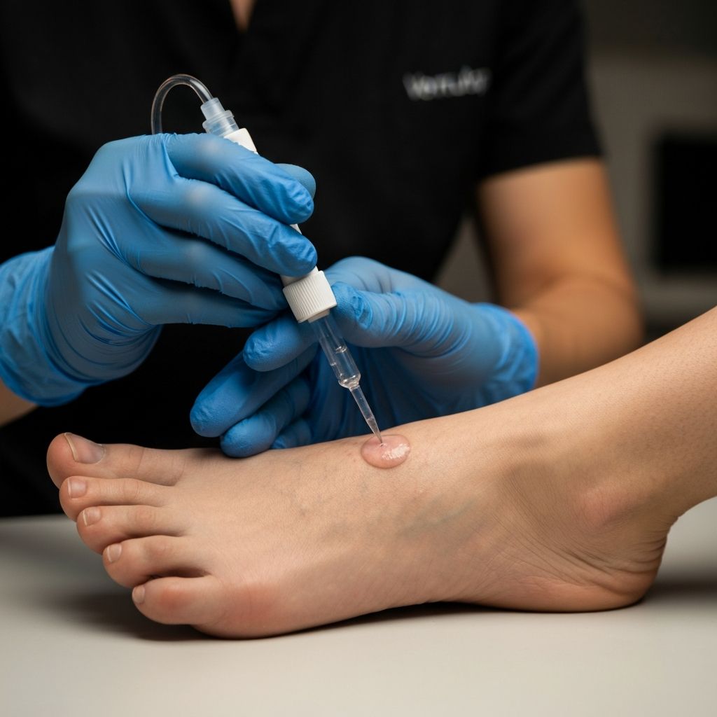 Clinic-only professional treatment that penetrates deeply to break down verruca tissue. Higher success rate than home treatments.